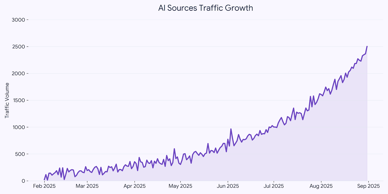 • Traffic redirected from platforms like ChatGPT, Gemini, Perplexity and Claude